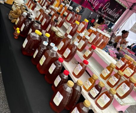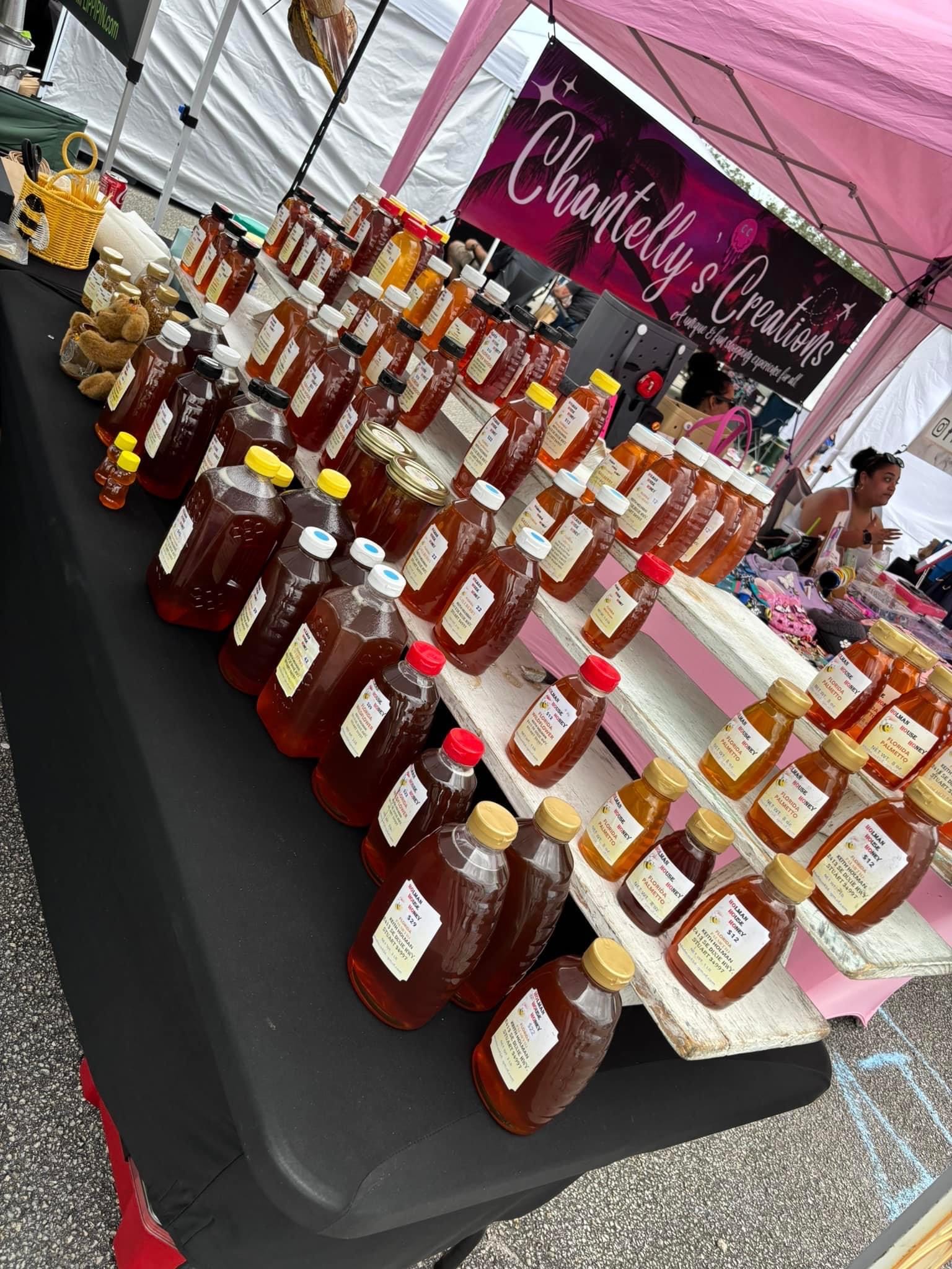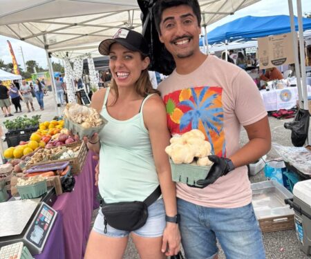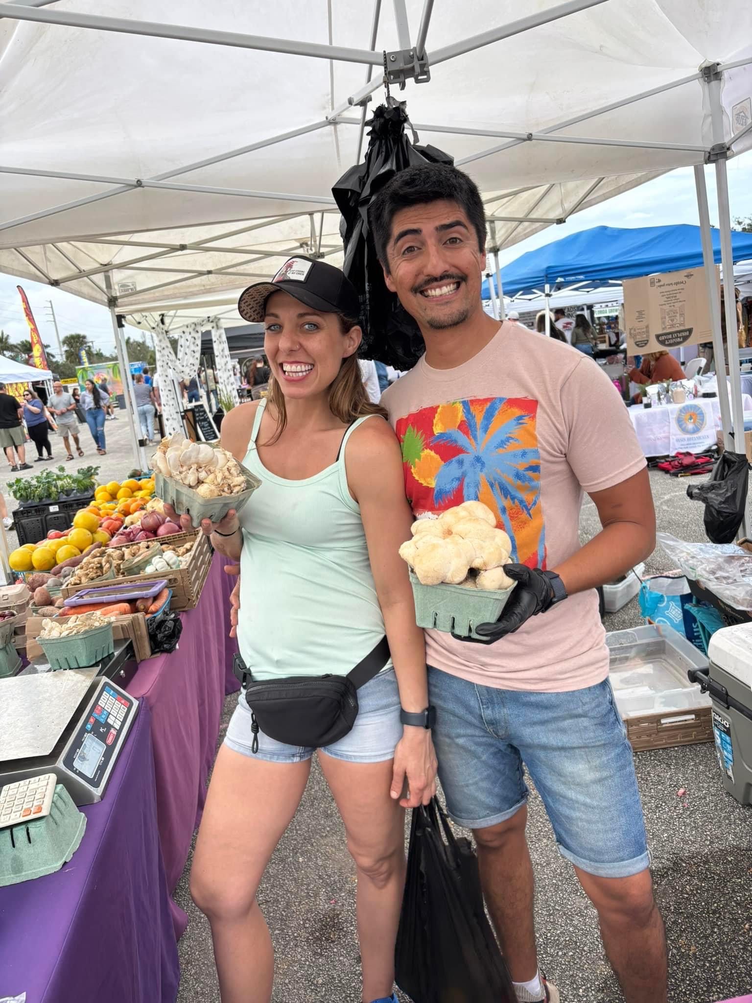 Good music fills the atmosphere while you shop for fresh foods such as Local meat supplied by Okeechobee, FL ranchers bringing you American wagyu cattle and Berkshire hogs raised without antibiotics and hormones. You will also find the best cuts of grass fed angus beef. You will meet local bee keepers with raw local honey & local produce vendor with locally grown & harvested mushrooms, micro-greens, farm-fresh chicken eggs and quail eggs, kombucha, seamoss, sweet and savory artisan breads, different styles of sourdough loaves, lots of delicious baked goods, fresh cakes and pies made with fresh organic ingredients, some gluten free goodies as well as jams, pickles, hot sauces, Jerky, freshly made hummus, pita bread and Mediterranean delights, Florida Farm fresh olive oil, aged balsamic, homemade seasonings, smoked fish & shrimp dip. Yummy guacamole and Tropical slushes and juices.
